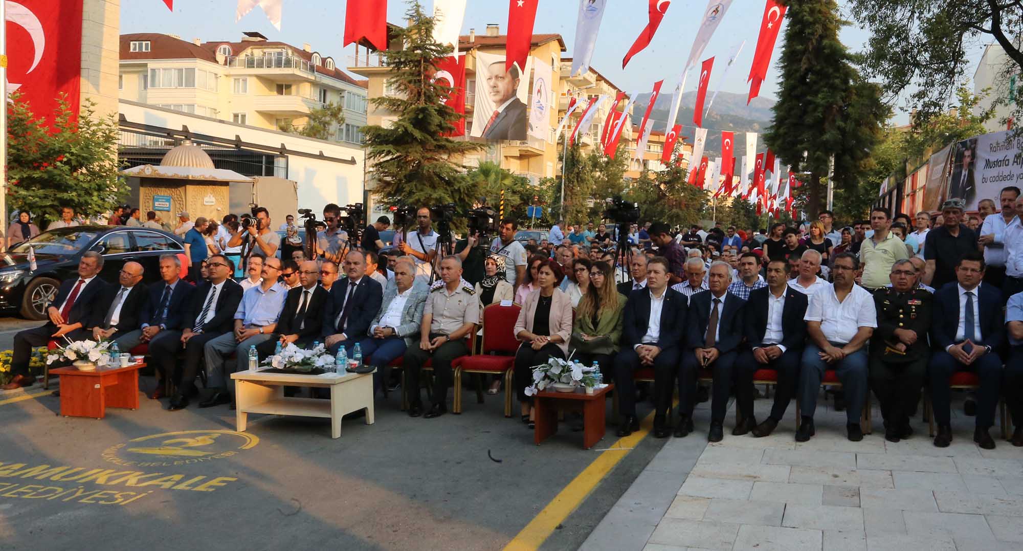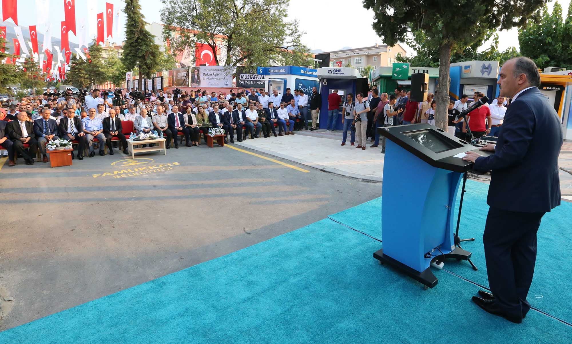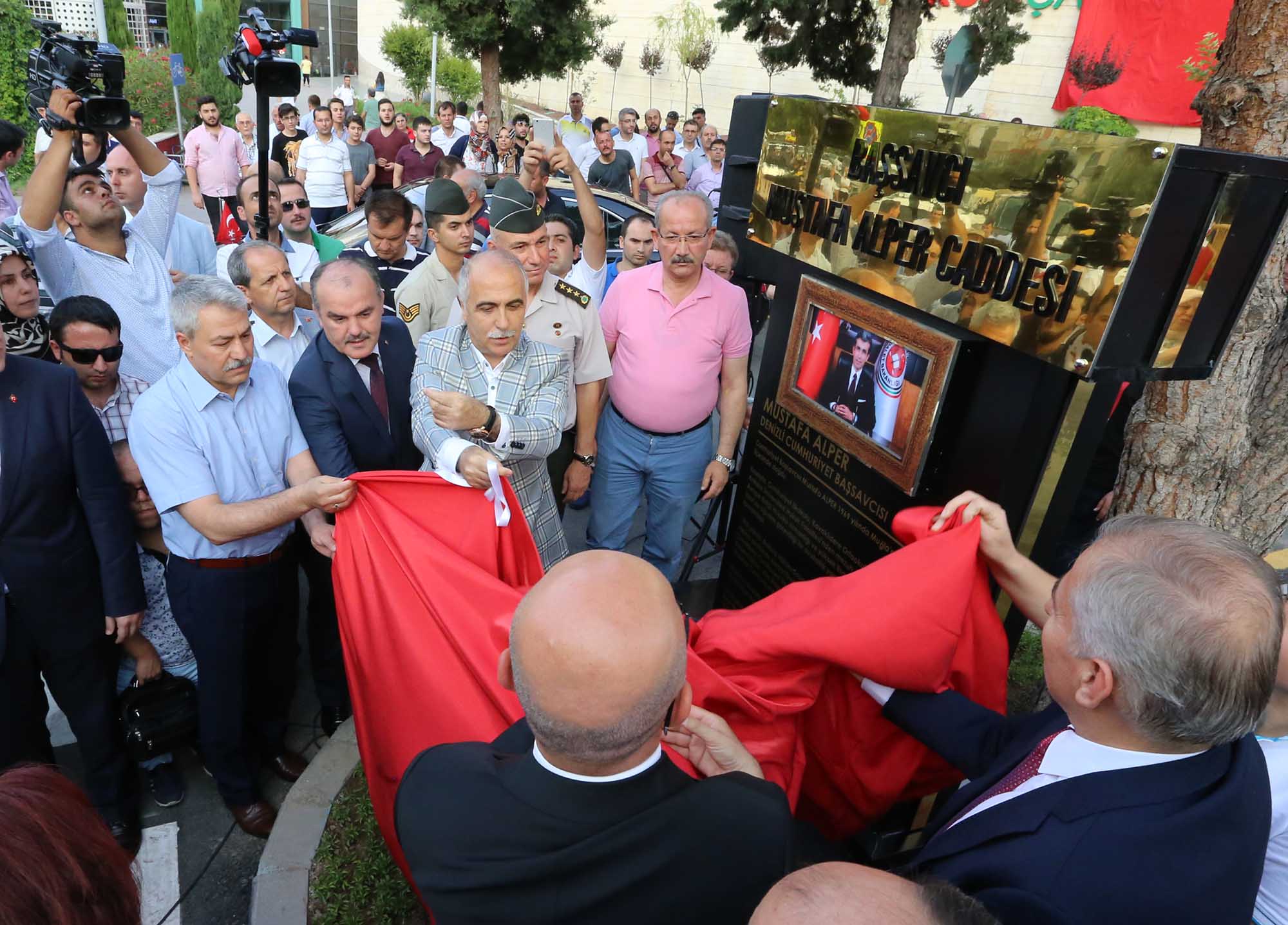 Pamukkale Belediyesi, bir kez daha örnek çalışmaya imza atarak 15 Temmuz’un sembol isimlerinden biri olan Denizli Cumhuriyet Başsavcısı Mustafa Alper’in ismini geleceğe taşıdı. 15 Temmuz hain darbe girişimi döneminde Hollanda ile yaşanan kriz nedeniyle Denizli Büyükşehir Belediyesi tarafından kardeş şehirliği iptal edilen Mehmetçik Mahallesi’ndeki Almelo’nun adını taşıyan caddenin ismi geçtiğimiz aylarda geçirdiği trafik kazasında hayatını kaybeden Başsavcı Mustafa Alper’in ismi ile değiştirildi. 15 Temmuz’un birinci yıl dönümünde düzenlen törene Vali Hasan Karahan, Denizli Büyükşehir Belediye Başkanı Osman Zolan, Denizli Cumhuriyet Başsavcı Vekili Vedat Kadri Özüer, Pamukkale Kaymakamı Hayrettin Balcıoğlu, Merkezefendi Kaymakamı Şükrü Görücü, İl Emniyet Müdürü Mevlüt Demir, İl Jandarma Komutanı Kurmay Albay Cengiz Yıldız, Denizli 11. Komando Tugay Komutanı Kurmay Albay Gültekin Yaralı, Merkezefendi Belediye Başkanı Muhammet Subaşıoğlu, AK Parti Denizli İl Başkanı Necip Filiz, Denizli Ticaret Odası Başkanı Uğur Erdoğan, Pamukkale Belediyesi Meclis Üyeleri ve Başkan Yardımcıları Selim Arkan, Adnan Kaya, Türkay Gözlükaya, Veli Demir, Abdullah Sevinçli ve çok sayıda vatandaş katıldı.