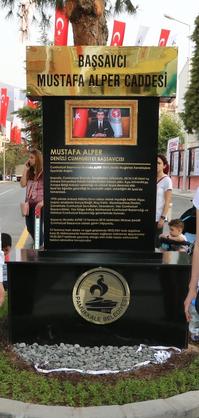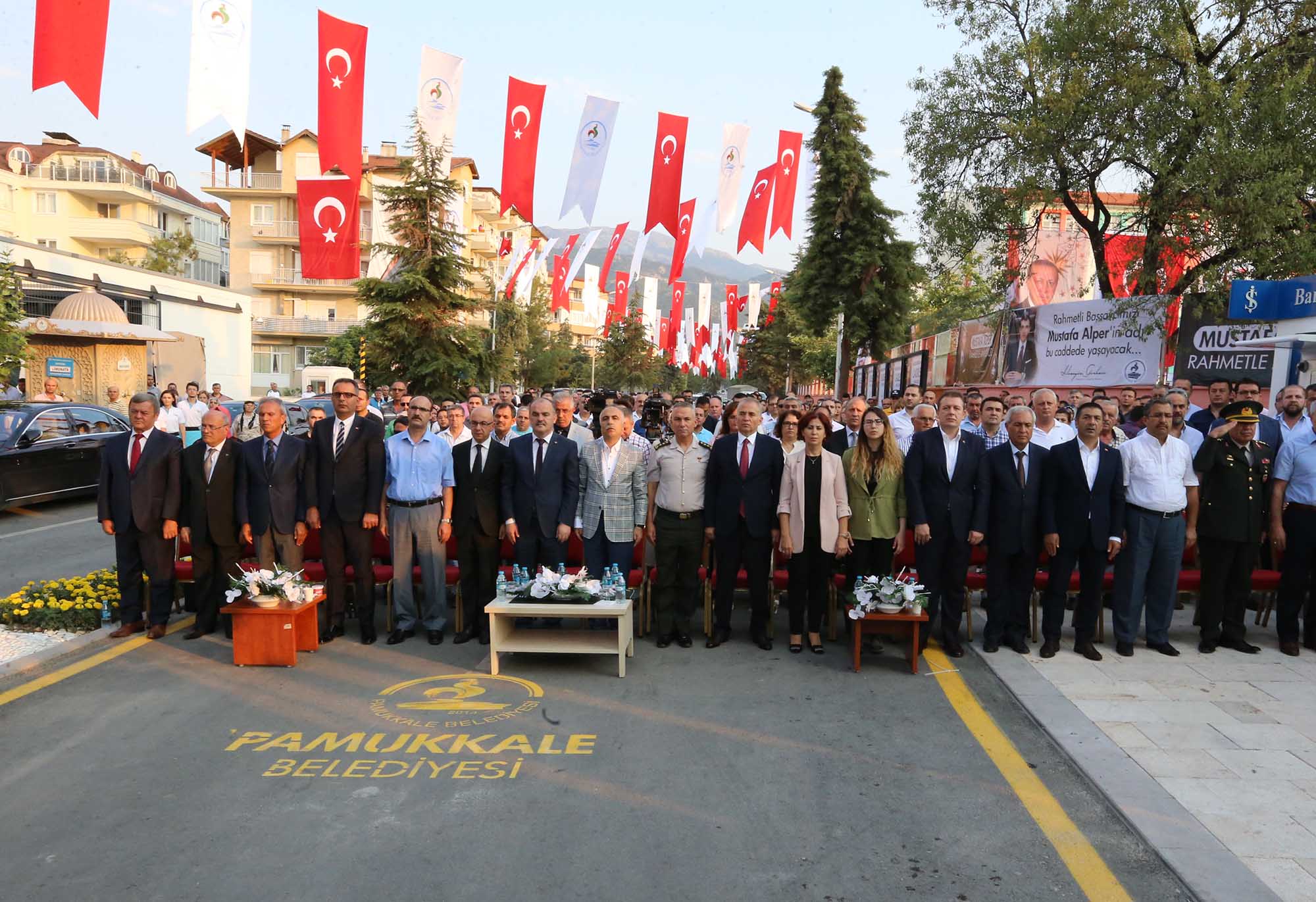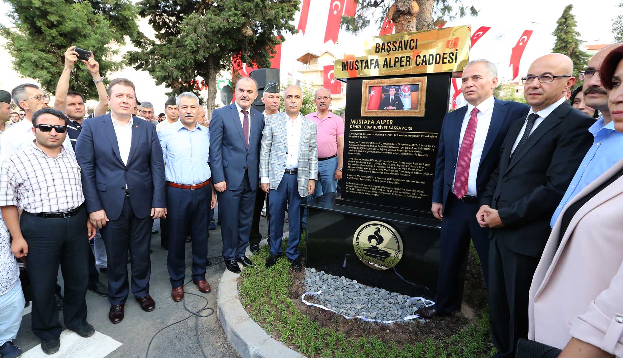 Pamukkale Belediyesi, bir kez daha örnek çalışmaya imza atarak 15 Temmuz’un sembol isimlerinden biri olan Denizli Cumhuriyet Başsavcısı Mustafa Alper’in ismini geleceğe taşıdı. 15 Temmuz hain darbe girişimi döneminde Hollanda ile yaşanan kriz nedeniyle Denizli Büyükşehir Belediyesi tarafından kardeş şehirliği iptal edilen Mehmetçik Mahallesi’ndeki Almelo’nun adını taşıyan caddenin ismi geçtiğimiz aylarda geçirdiği trafik kazasında hayatını kaybeden Başsavcı Mustafa Alper’in ismi ile değiştirildi. 15 Temmuz’un birinci yıl dönümünde düzenlen törene Vali Hasan Karahan, Denizli Büyükşehir Belediye Başkanı Osman Zolan, Denizli Cumhuriyet Başsavcı Vekili Vedat Kadri Özüer, Pamukkale Kaymakamı Hayrettin Balcıoğlu, Merkezefendi Kaymakamı Şükrü Görücü, İl Emniyet Müdürü Mevlüt Demir, İl Jandarma Komutanı Kurmay Albay Cengiz Yıldız, Denizli 11. Komando Tugay Komutanı Kurmay Albay Gültekin Yaralı, Merkezefendi Belediye Başkanı Muhammet Subaşıoğlu, AK Parti Denizli İl Başkanı Necip Filiz, Denizli Ticaret Odası Başkanı Uğur Erdoğan, Pamukkale Belediyesi Meclis Üyeleri ve Başkan Yardımcıları Selim Arkan, Adnan Kaya, Türkay Gözlükaya, Veli Demir, Abdullah Sevinçli ve çok sayıda vatandaş katıldı.
