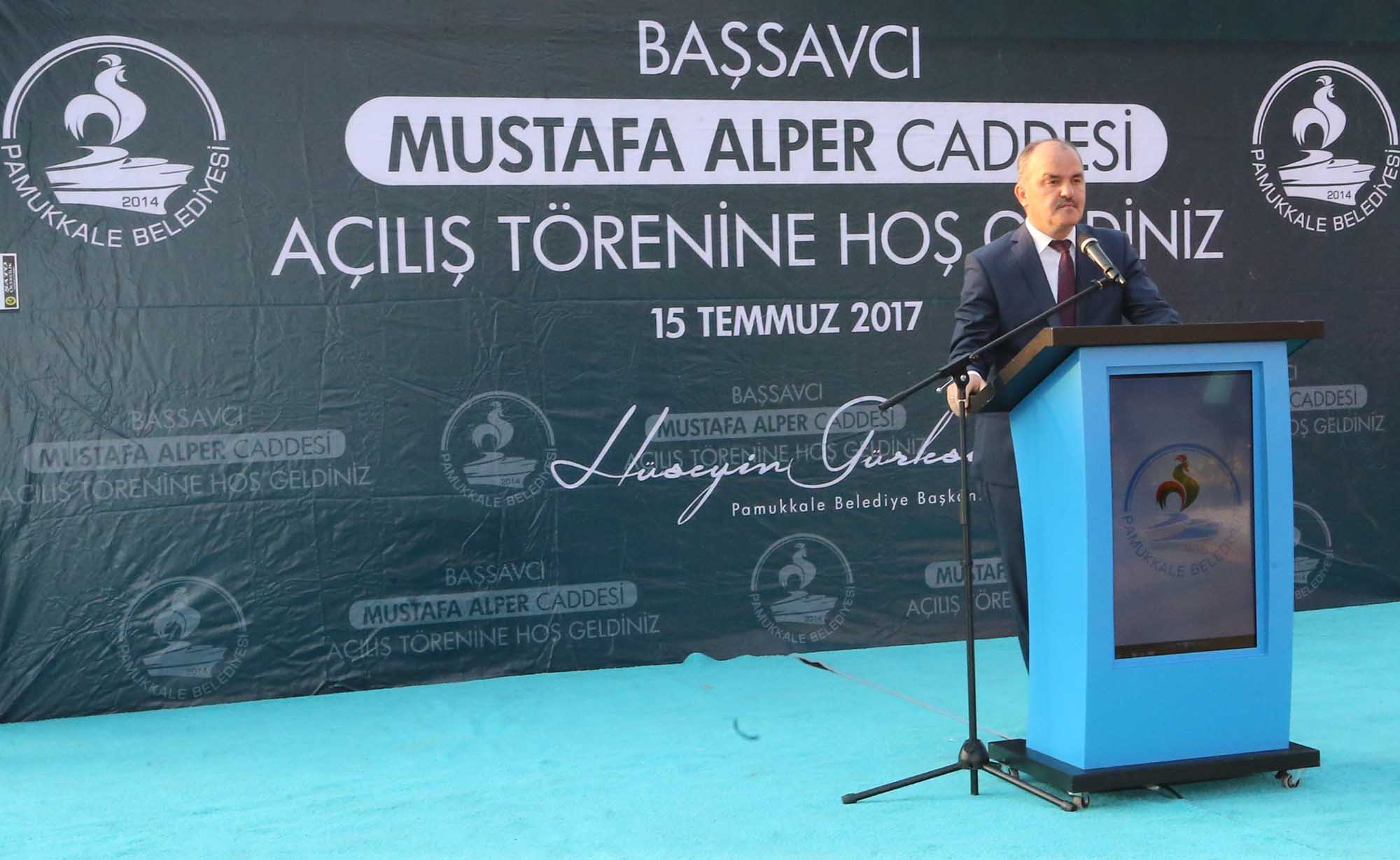 Denizli Büyükşehir Belediye Başkanı Osman Zolan ise merhum Mustafa Alper’in 15 Temmuz kahramanlarından biri olduğunu kaydederek, “Mustafa Alper, mert biriydi, hukuk ne diyorsa onu yapan, bayrağına sahip çıkan biriydi. Başsavcımız Mustafa Alper, 15 Temmuz gecesi hiç tereddüt etmeden hainlere karşı dik duran görevini hiç ötelemeyen bir insandı. Fakat kendisini erken kaybettik. Mekanı cennet olur inşallah. Pamukkale Belediyemiz Almelo caddesinin ismini meclis kararıyla değiştirerek, Başsavcımız merhum Mustafa Alper Caddesi ismini verdi. Cumhuriyet Başsavcısı merhum Mustafa Alper’in isminin bu caddede yaşatılma kararı alan Pamukkale Belediyesine bu güzel düşünceleri için teşekkür ediyorum” dedi.