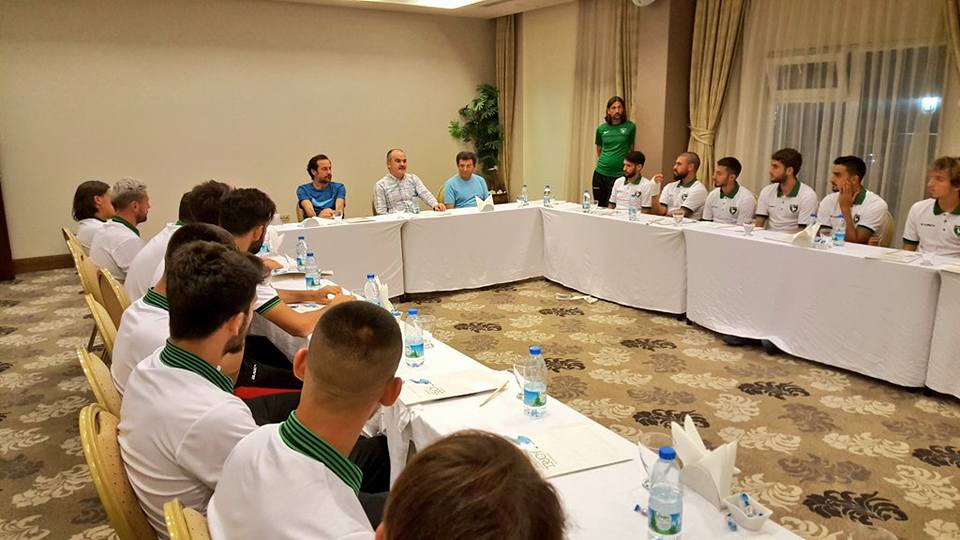 “Sporun ve sporcunun yanındayız” sloganıyla Pamukkale ilçesinde önemli spor yatırımları yapan Pamukkale Belediyesi’nin başkanı Hüseyin Gürlesin’den Denizlispor’a sürpriz ziyaret. Geçtiğimiz günlerde Denizlispor yönetimini ağırlayan Başkan Gürlesin, takımı kamp yaptığı Afyonkarahisar’da ziyaret etti. Temaslarda bulunmak üzere Ankara’ya giden Pamukkale Belediye Başkanı Hüseyin Gürlesin, 2017-2018 sezonu öncesi Afyonkarahisar’da kampta olan Denizlispor oyuncularını ve yöneticilerine sürpriz yaptı. Başkan Gürlesin, Teknik Direktör Yusuf Şimşek, Kafile Başkanı Hikmet Olgun ve futbolcularla Afyonkarahisar kampında bir araya geldi. Takımın son durumu hakkında bilgiler alan Pamukkale Belediye Başkanı Hüseyin Gürlesin, “Denizlimizin adını sporda alanında duyurarak, futbolda kentimizi başarıyla temsil eden Denizlispor’umuzun her zaman yanında yer aldık. Bundan sonra da böyle olacaktır. TFF 1. Lig'de mücadele eden takımımızın, 2017-2018 sezonu öncesi kampta ziyaret ederek, onların yanlarından olduğumuzu göstermek istedik. Yeni sezonda başarılı takımımızı Süper Lig’e yükselmesi temennimizdir” dedi. Belediye Başkanı Hüseyin Gürlesin’in ziyaretinden çok memnun olduklarını ifade eden, Teknik Direktör Yusuf Şimşek, Kafile Başkanı Hikmet Olgun ve futbolcular, tüm kentin takıma destek vermesini istediler.