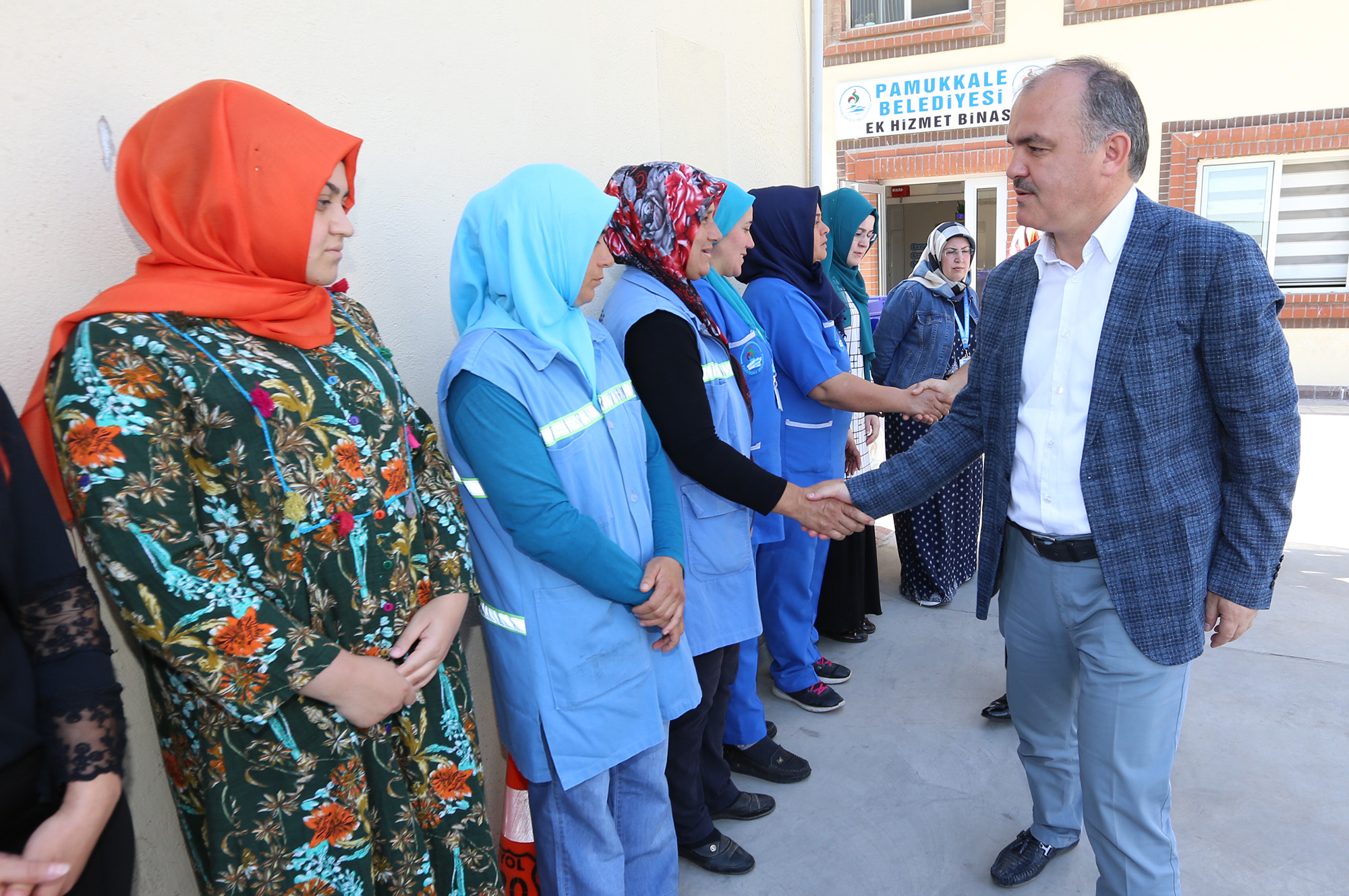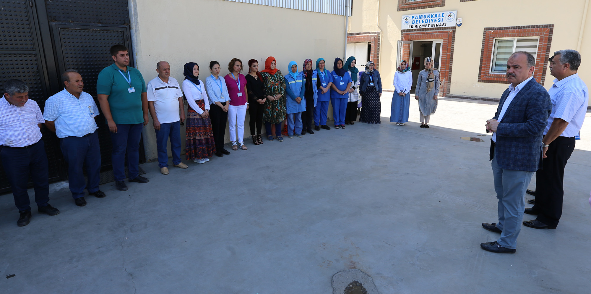 Pamukkale Belediyesi’nde Kurban Bayramı öncesi bayramlaşma gerçekleşti. Belediyenin tüm hizmet binalarında görev yapan personellerle bir araya gelen Pamukkale Belediye Başkanı Hüseyin Gürlesin, “Bayramlar bizim toplumumuz için çok önemli. İlçemize birlikte hizmet eden siz değerli mesai arkadaşlarımın ve ailelerinin bayramını kutluyorum” dedi.