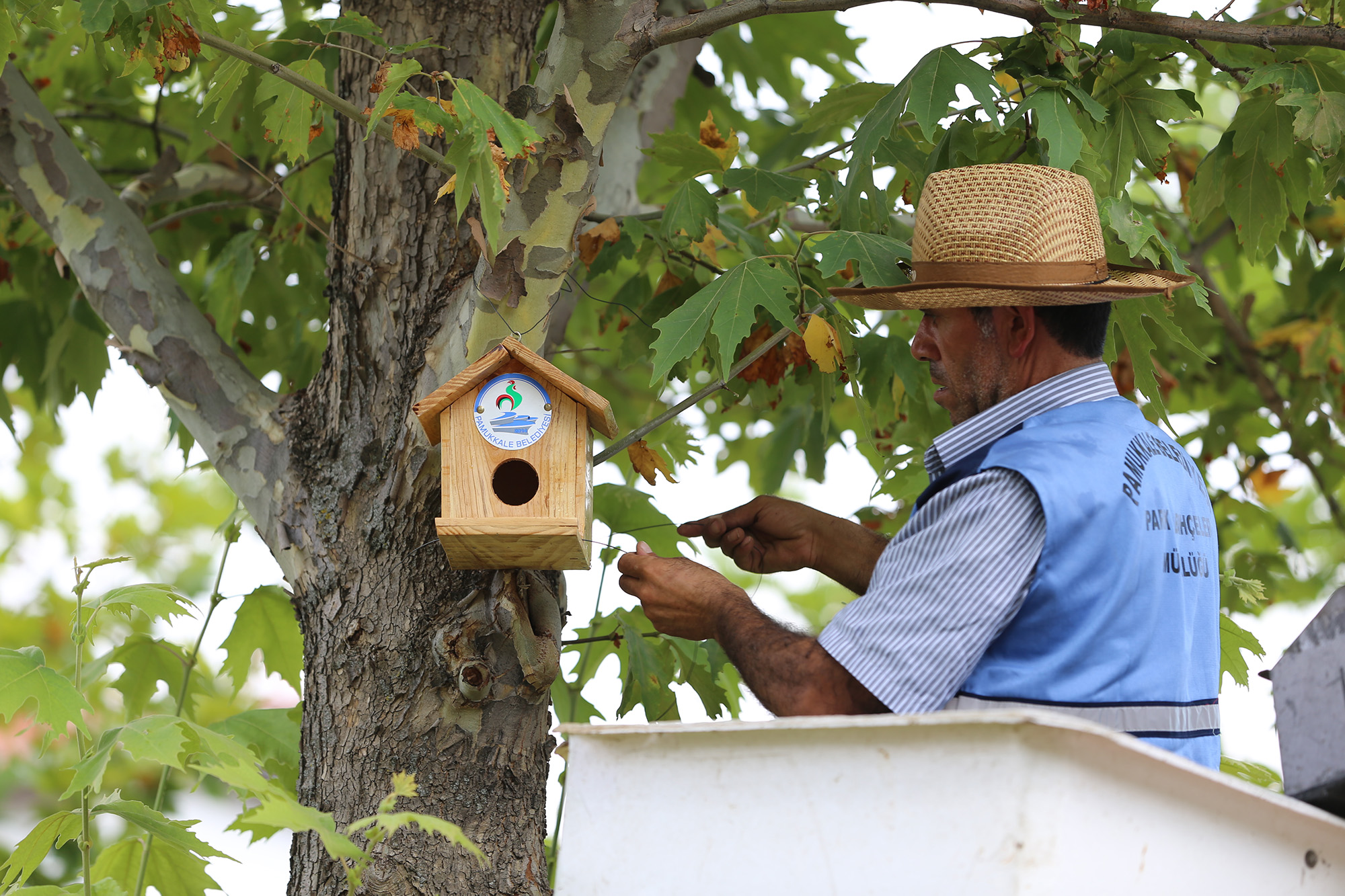 Pamukkale Belediyesi, örnek bir projeye daha imza atarak ilçe sınırları içinde bulunan parklardaki uygun ağaçlara kuş yuvaları asıyor. Pamukkale Belediyesi Park ve Bahçeler Müdürlüğü ekipleri doğal afetler sonucu devrilen ve kuruyan ağaçları kuş yuvası haline getiriyor. İlk etapta 100 adetle başlayan proje kapsamında parklara ve yeşil alanlara kuş yuvaları asılacak.