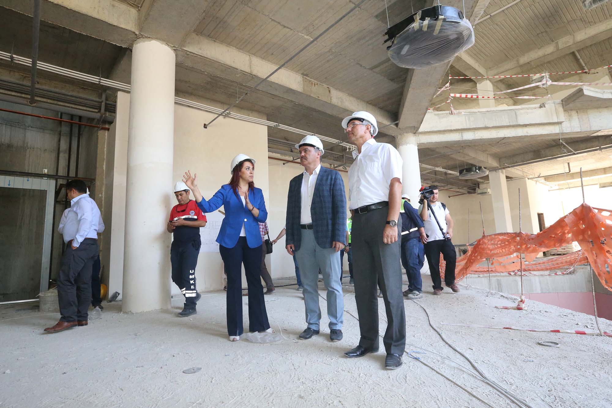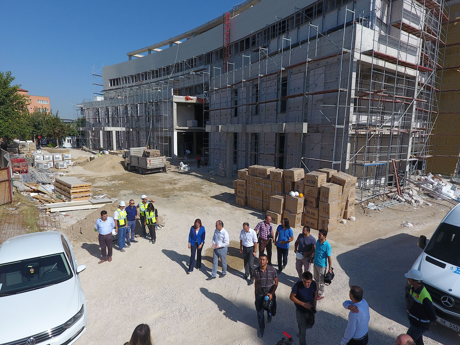 Yeni kurulan bir belediye olarak amaçlarının kalıcı eserler bırakarak, halk tarafından kendilerine verilen görevi en iyi şekilde yerine getirme gayreti içinde olduklarını ifade eden Pamukkale Belediye Başkanı Hüseyin Gürlesin, Dokuzkavaklar Sağlık Kompleksi inşaatı hakkında İl Sağlık Müdürü Şükrü Arpacı ve Denizli Kamu Hastaneleri Birliği Genel Sekreteri Berna Öztürk’e bilgiler aktardı. 12 Kasım 2016 tarihinde temeli atıldığını ve gelinen noktada yüzde yüz inşaatının bittiğini, elektrik tesisatında yüzde elli, mekanik imalatın yüzde yetmiş tamamlandığını ifade eden Başkan Gürlesin, “Dokuzkavaklar Sağlık kompleksimizin genel anlamda yüzde yetmişi bitmiş durumdadır. Amacımız yılbaşında testlere başlayarak, 2018’in ilk aylarında da hizmete almak. Kompleksimiz, aynı günde 20 poliklinikte, aynı anda 2 bin kişinin hizmet alacağı büyük bir yatırımdır. Bir anlamda mini bir devlet hastanesidir. Sağlık kompleksimiz sadece semtimize değil il geneline hitap edecektir. Devlet hastanemizin 3/1 yükünü hafifleteceğini düşünüyoruz. Bu anlamda sadece bu bölgede yaşayan yaklaşık 200 bin civarında vatandaşımız bulunuyor. Diğer yakın ilçelerimizle beraber 300 bin civarında vatandaşımıza hizmet edecek olan büyük bir yatırımdır. Bir anlamda sadece bu bölgeyi değil diğer sağlık kuruluşlarının da yükünü alacağından dolayı il genelimize hitap edecek olan çok önemli bir yatırım olduğunu düşünüyorum. Vizyon projelerimizden bir tanesidir. Bunu da 40 aylık bir belediye olduğumuz ile kıyasladığımızda bizim olaya bakış açımızı ortaya koymaktadır. Bizler, sadece belediyecilik anlamında bildiğimiz işlerin dışında kalıcı ve önemli yatırımlar yaparak farkımızı ortaya koyuyoruz. Yani Pamukkale Belediyesi olarak kalıcı eserler bırakarak, halkımızın sorunlarına kalıcı çözümler üretecek projelerle vatandaşımızın huzuruna çıkıyoruz” dedi.