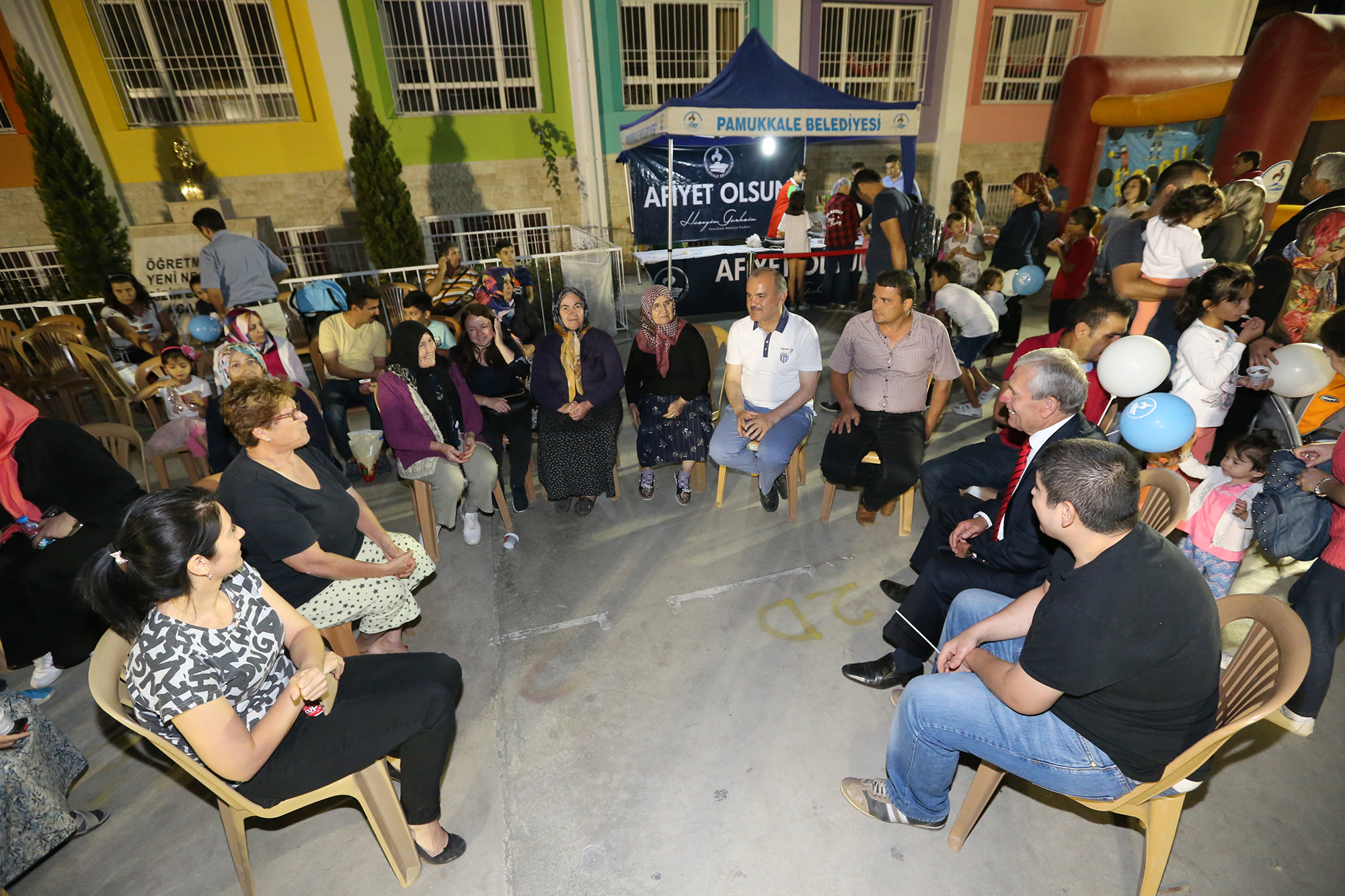 Pamukkale Belediyesi’nin “Pamukkale’de çocuklar eğleniyor” sloganıyla hayata geçirdiği proje devam ediyor. Her hafta sonunda iki farklı mahallede kurulan şenlik alanları bu kez Kuşpınar ve Fesleğen mahallelerinde idi. Kuşpınar Mahallesi’nde Saadet Erikoğlu İlkokulu bahçesine ve Fesleğen Mahallesi’nde Atatürk İlkokulu bahçesine kurulan oyun gruplarında gönüllerince eğlenen çocukların mutluluğuna Pamukkale Belediye Başkanı Hüseyin Gürlesin de ortak oldu. Minikler ve aileleriyle tek tek ilgilenerek, vatandaşlarla sohbet eden Başkan Hüseyin Gürlesin, “Amacımız, rutin belediyecilik hizmetleri dışında, ilçe halkımızın her kesimine hitap edecek etkinlikler düzenleyerek, vatandaşlarımızın sosyal yaşantılarına güzellik katmaya çalışıyoruz” dedi.