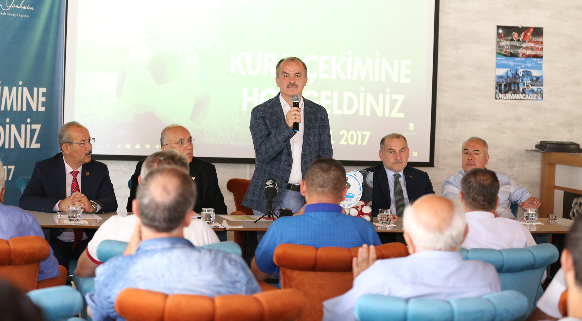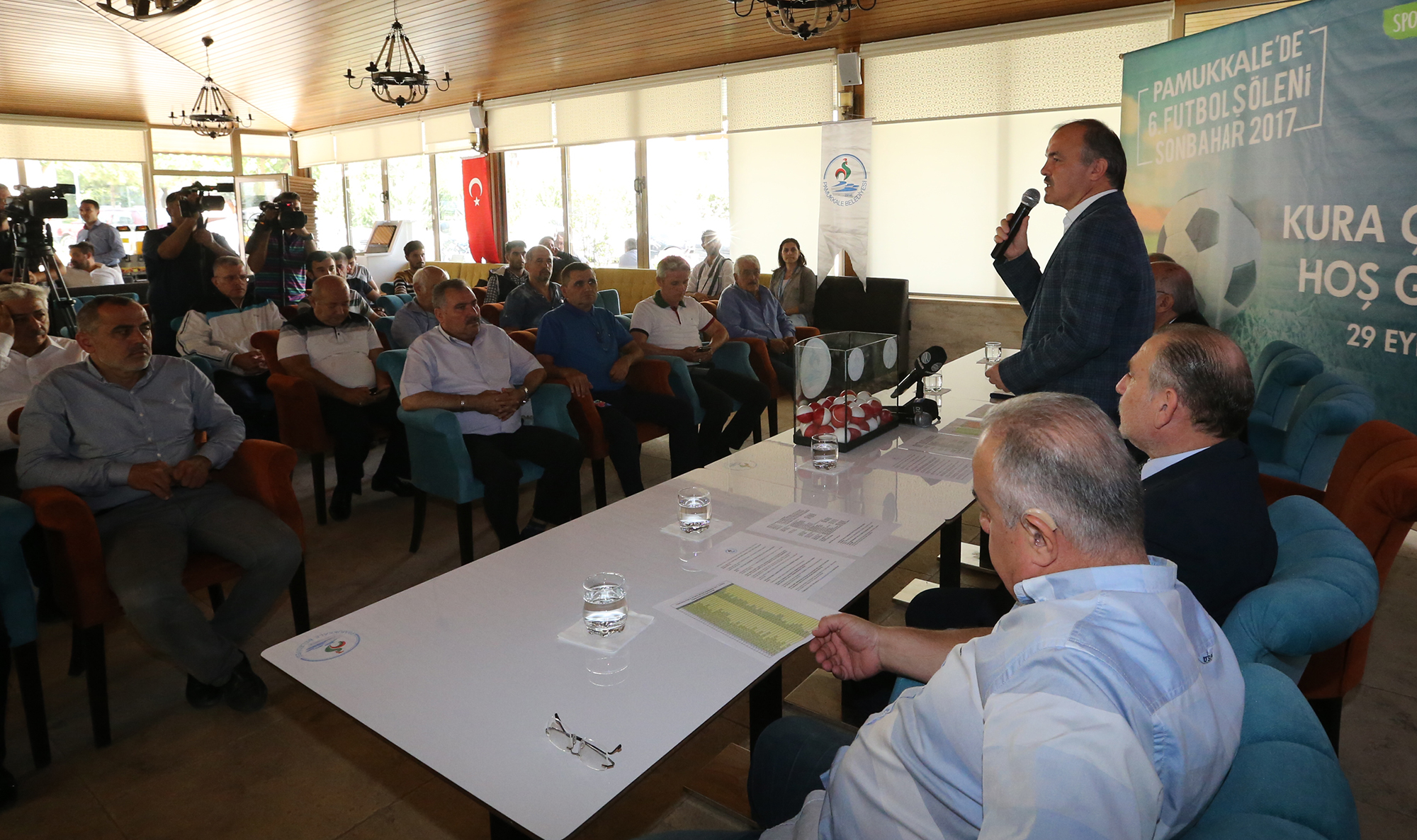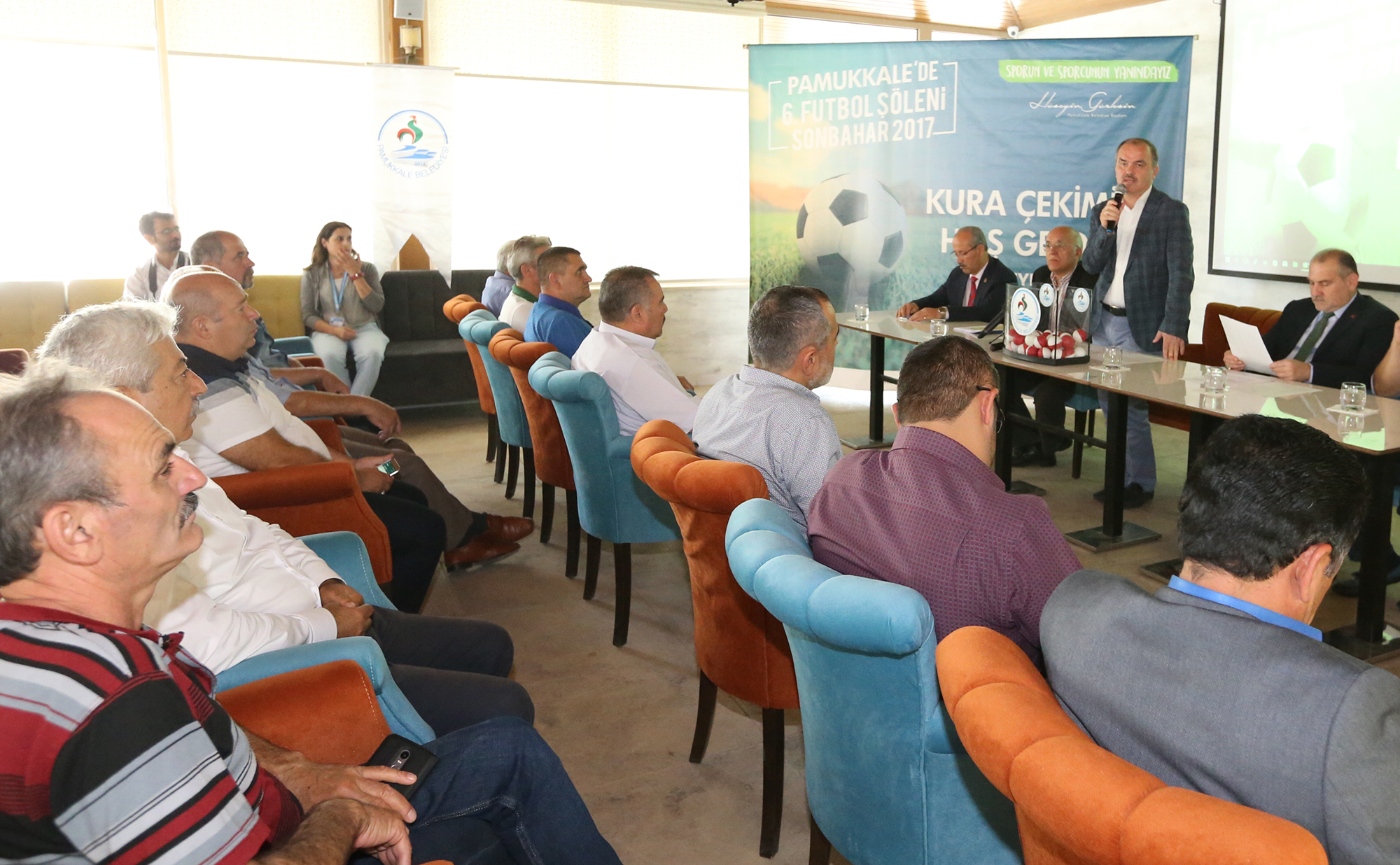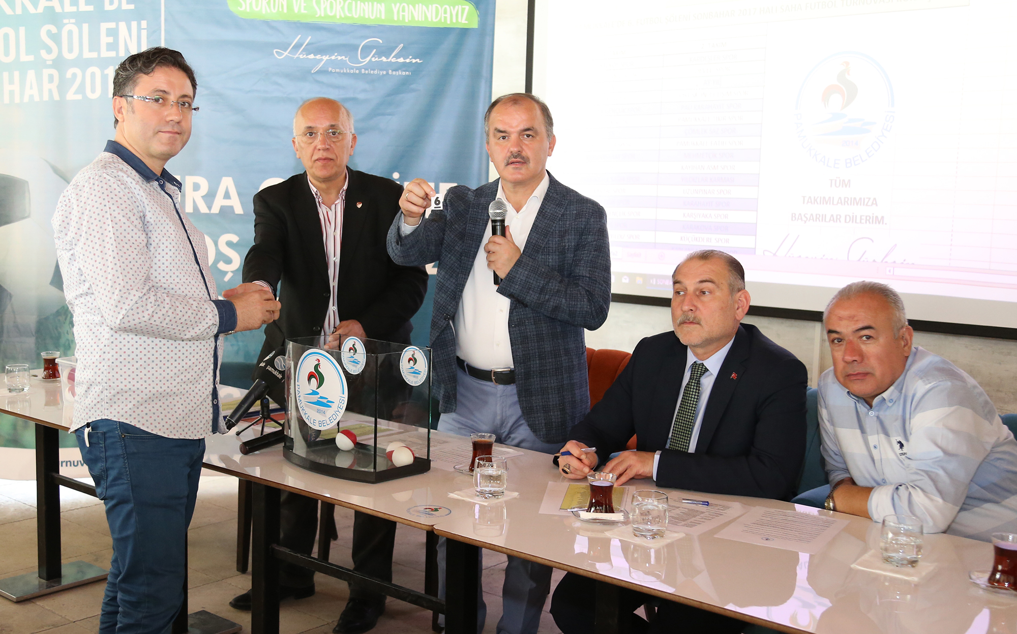 Pamukkale Belediyesi’nin geleneksel olarak düzenlediği “Pamukkale’de 6. Futbol Şöleni Sonbahar 2017 Halı Saha Futbol Turnuvası”nın kura çekimi yapıldı. 31 mahalleden 40 takımın katılımıyla gerçekleşecek olan şölenin kura çekiminde konuşan Pamukkale Belediye Başkanı Hüseyin Gürlesin, “Mahalleler arasında kaynaşmayı sağlamak amacıyla yapılan turnuvanın centilmence geçmesini dilerim” dedi.