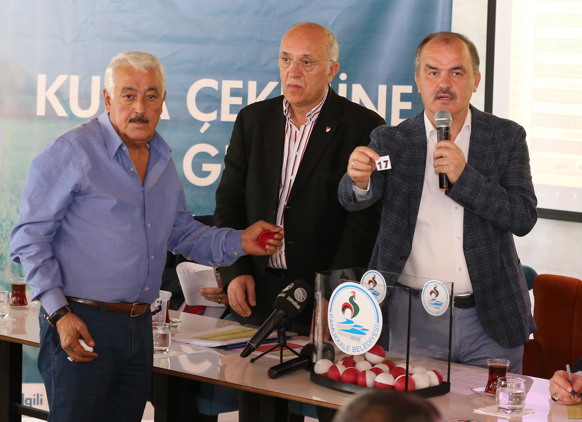 Başkan Gürlesin’in konuşmasının ardından takımların kaptanları ve muhtarları tarafından kura çekimi gerçekleştirildi. Kura çekimi ile fikstür numarasını belirleyen katılımcılar kendi kaderlerini de belirlemiş oldu. Yapılan kura çekimi sonunda ilk tur eşleşmeleri şu şekilde oluştu; Tekkeköyspor –Kardeşlerspor, Yukarışamlıspor – Develispor, Akköy Çerkezspor – Ay Yıldızlarspor, Kınıklıspor – Dost Selin İletişimspor, Gözler Gençlikspor – PAÜ Karahayıtspor, Zeybekspor – Pamukkale Tıkırspor, Aktepe Gençlikspor – Çöleksazspor, Kurtlucaspor – Pamukkale Fatihspor, Kervansarayspor – Mehmetcikspor, Akşarspor – Kayıhan ASM, Pamukkale Sağırspor – Yıldızlar Karması, Kartalspor – Uzunpınarspor, Yıkım Ekibispor – Karahayıtspor, Pelitlibağ Gençliskpor – Karşıyakaspor, Fikirtepespor – Karakovaspor, Cumhuriyet Yıldızspor – Küçükderespor, TCK 27 Yolspor – Kaplan Yıldızlarspor, Sekiköyspor – Yeniköy Gençlikspor, Kaplanlarspor – Haytabeyspor ve Cankurtaranspor – Bomcularspor. Eleme usulü oynanacak olan maçlar sonunda 20 takım adını 2. Tura yazdıracak. Maçların oynanacağı tarih ve saatler Pamukkale Belediyesi’nin www.pamukkale.bel.tr adresinden daha sonra açıklanacak.