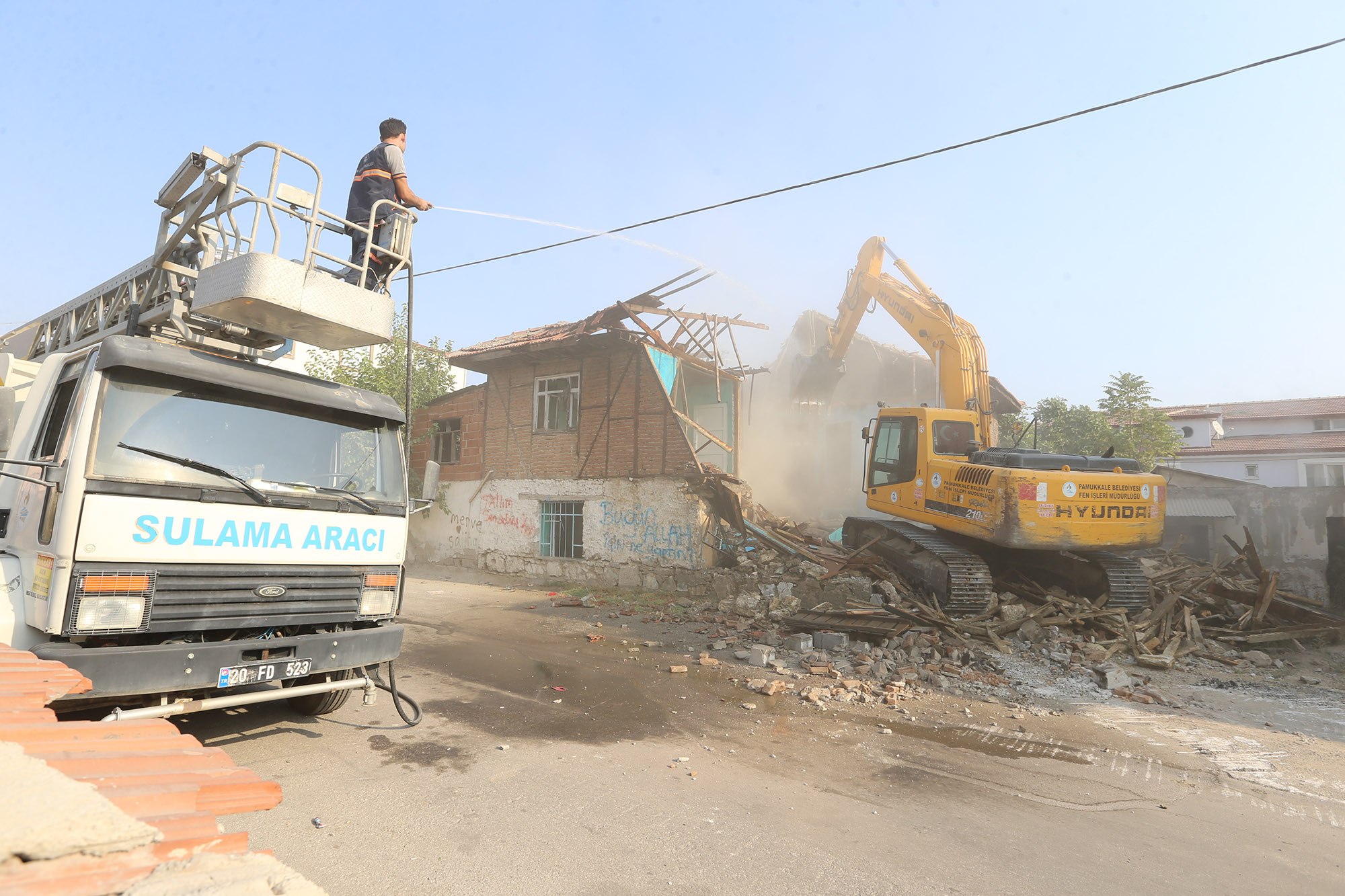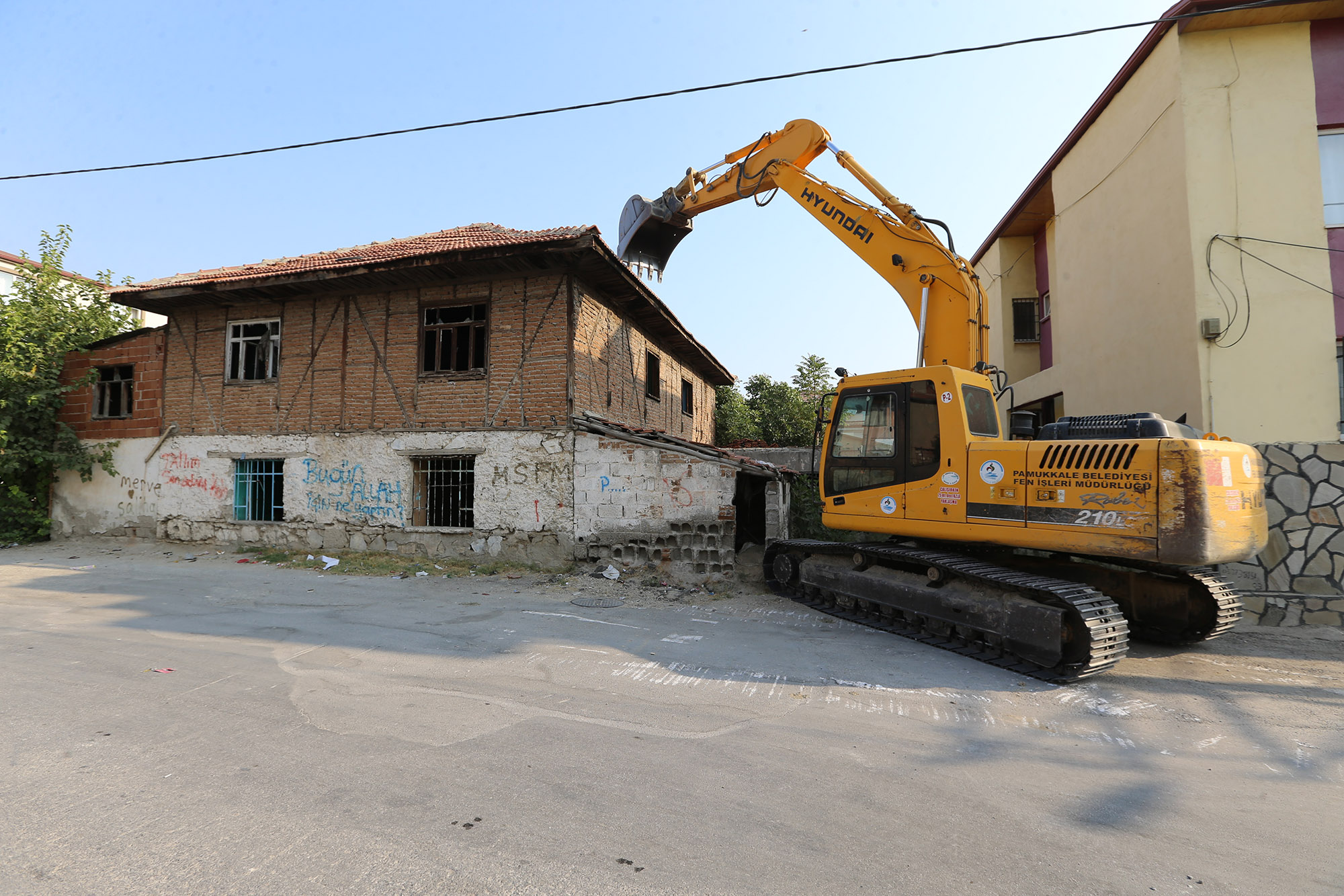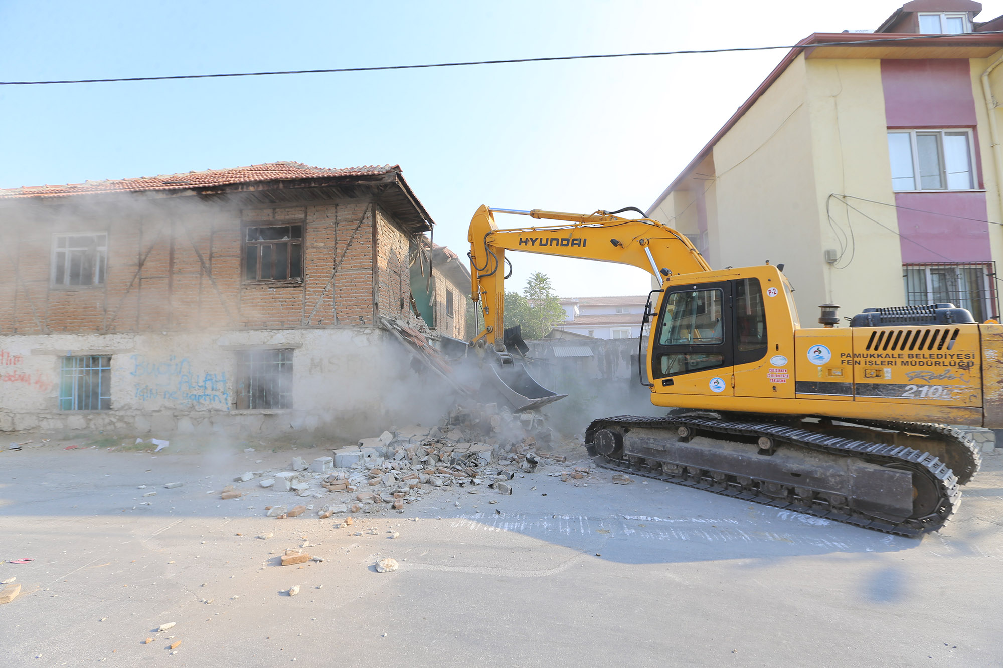 Pamukkale Belediyesi, ilçe sınırları içerisinde kalan, emniyet ve sağlık açısından risk oluşturan metruk binaların yıkımına devam ediyor. Pamukkale Belediye Başkanı Hüseyin Gürlesin, “Mahallelerimizde, vatandaşlarımızın can ve mal güvenliğini tehdit eden, metruk binaları yapılan incelemelerimiz ve yine gerekli izinlerin alımından sonra yıkım işlemlerini gerçekleştiriyoruz” dedi.