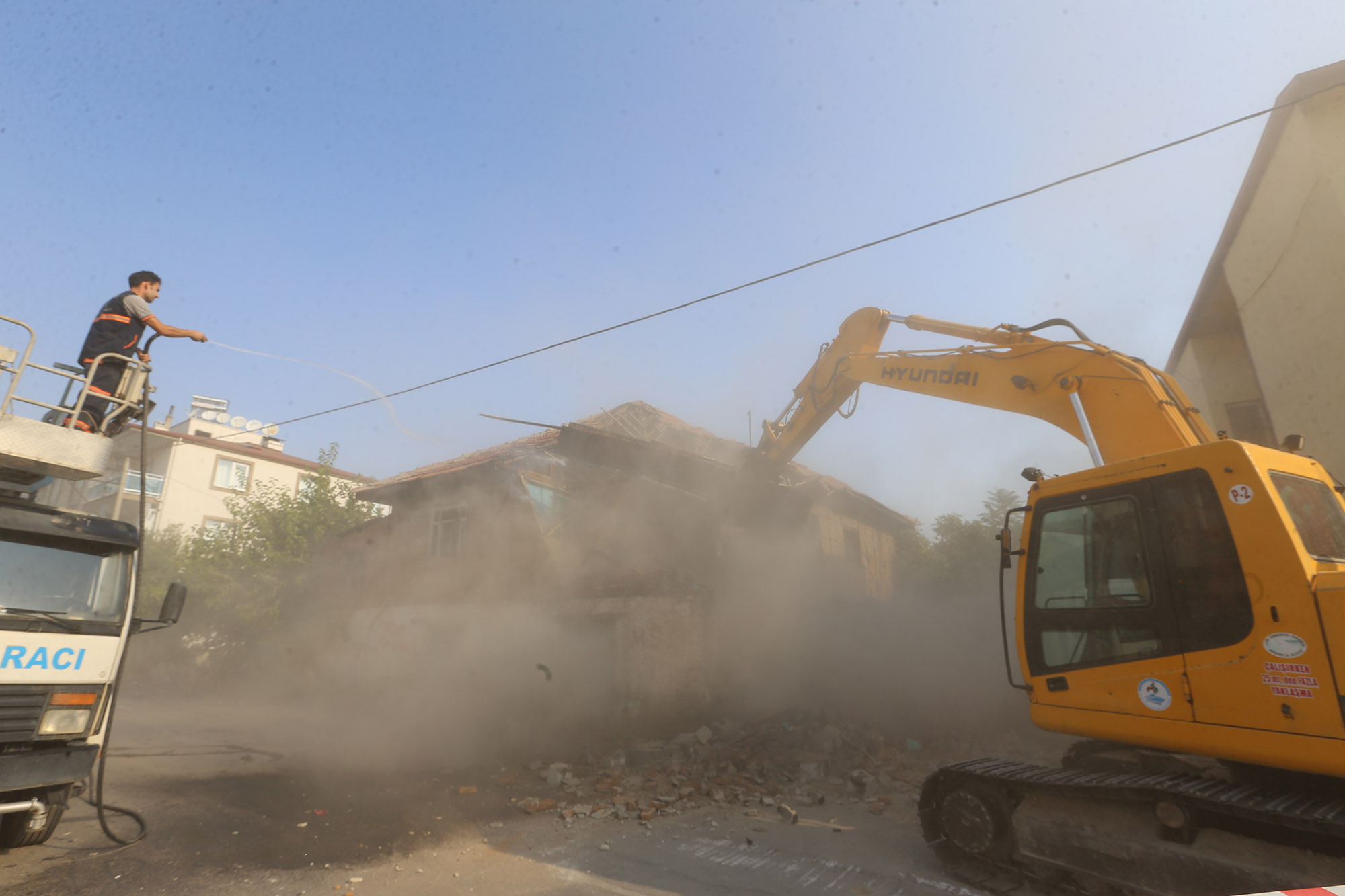Pamukkale’de güvenlik açısından risk teşkil eden binalar bina sahiplerinin izni doğrultusunda Pamukkale Belediyesi Fen İşleri ekipleri tarafından yapılıyor. Geçtiğimiz gün Dokuzkavaklar Mahallesi 2037 sokakta bulunan binanın yıkımını gerçekleştirdi. Pamukkale Belediyesi sınırları içerisinde bulunan, mahalle sakinlerinin emniyeti ve sağlığı açısından risk oluşturan binaların yıkımını gerçekleştirmeye devam ettiklerini ifade eden Pamukkale Belediye Başkanı Hüseyin Gürlesin, “Mahallelerimizde, terkedilmiş, yıkılmaya yüz tutmuş, yangın ve göçme tehlikesi arz eden binaları, olumsuz bir durumla karşılaşmadan önce yıkıyoruz. Vatandaşlarımızın can ve mal güvenliğini tehdit eden, metruk binaları muhtarlarımız aracılığıyla tespit edip, ev sahiplerinden de gerekli izni aldıktan sonra ya da mahalle sakinlerimizin talebi üzerine incelemelerimiz ve yine gerekli izinlerin alımından sonra yıkım işlemlerini gerçekleştiriyoruz. Vatandaşlarımızdan isteğimiz, mahallelerinde bu tür metruk bina var ise bizlere iletmeleridir. Bizlere bilgi verirlerse biz de belediye olarak, bir olumsuzluk yaşanmadan çözüm üretebiliriz” dedi.