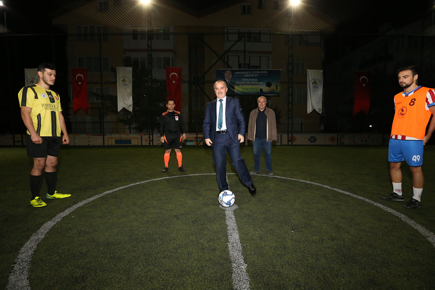 Pamukkale Belediyesi tarafından ilki 2015 yılında yapılan “Pamukkale’de Futbol Şöleni”nin altıncısı olan “Sonhabar 2017 Halı saha Futbol Turnuvası”nda heyecan başladı. Turnuvanın başlangıç vuruşunu yapan Pamukkale Belediye Başkanı Hüseyin Gürlesin, “Pamukkale’de 6.Futbol Şöleni Sonbahar 2017 Halı Saha Turnuvamıza 31 mahalleden 40 takımımız katılıyor. Maçların centilmence geçmesini diliyorum” dedi.