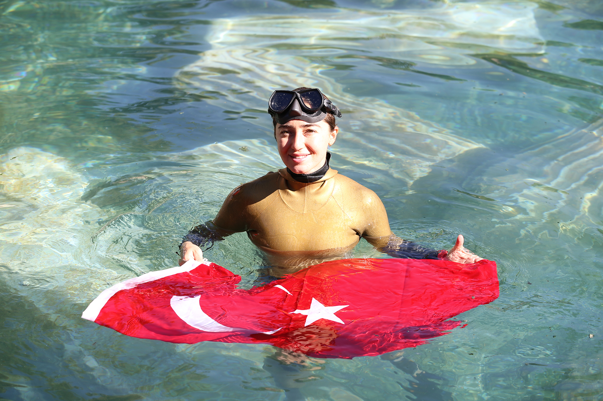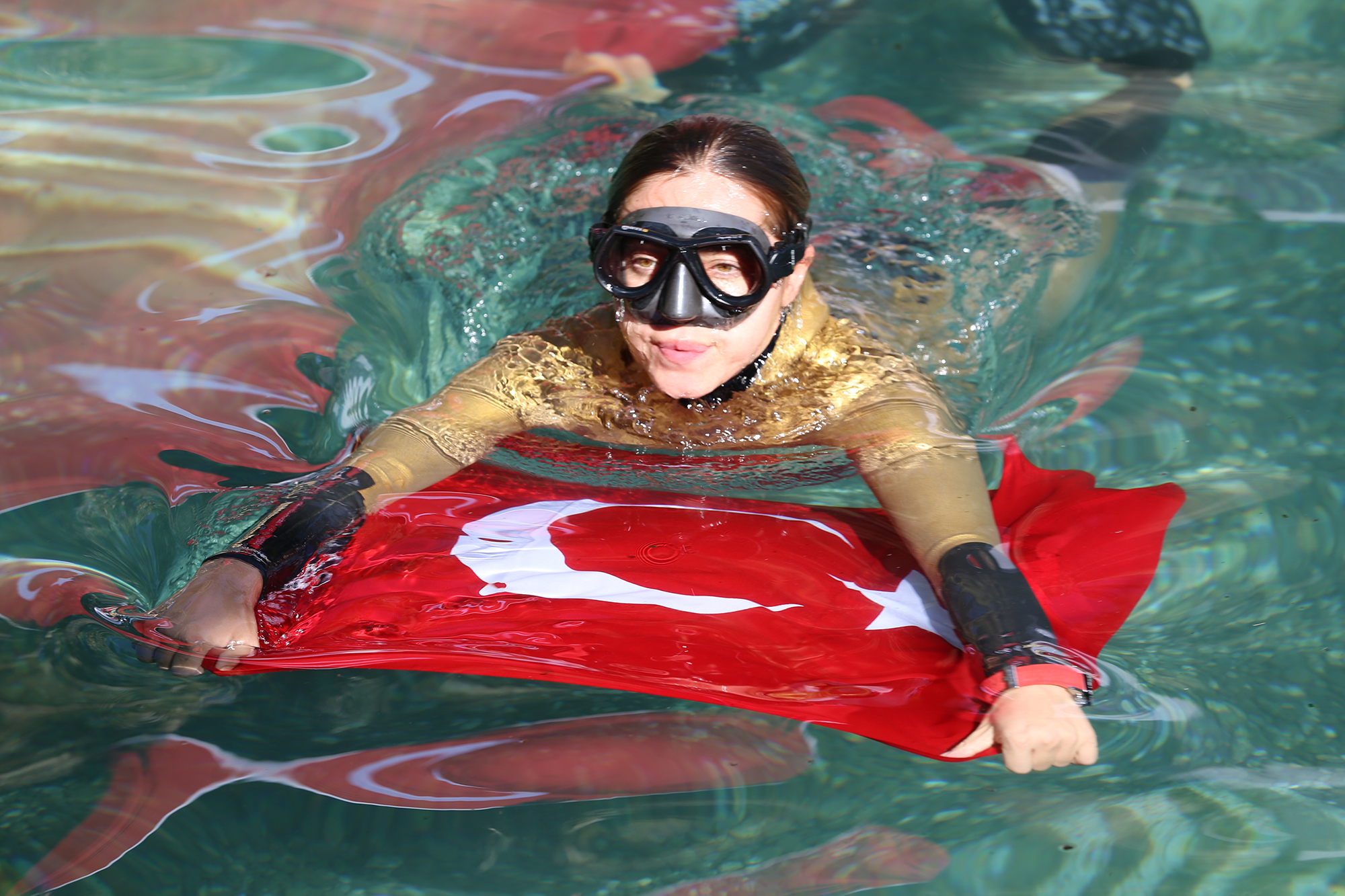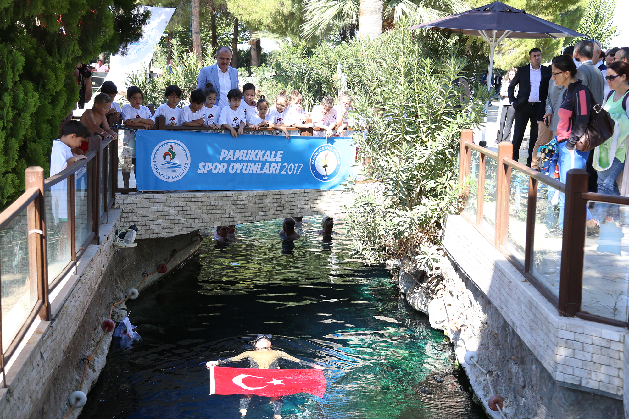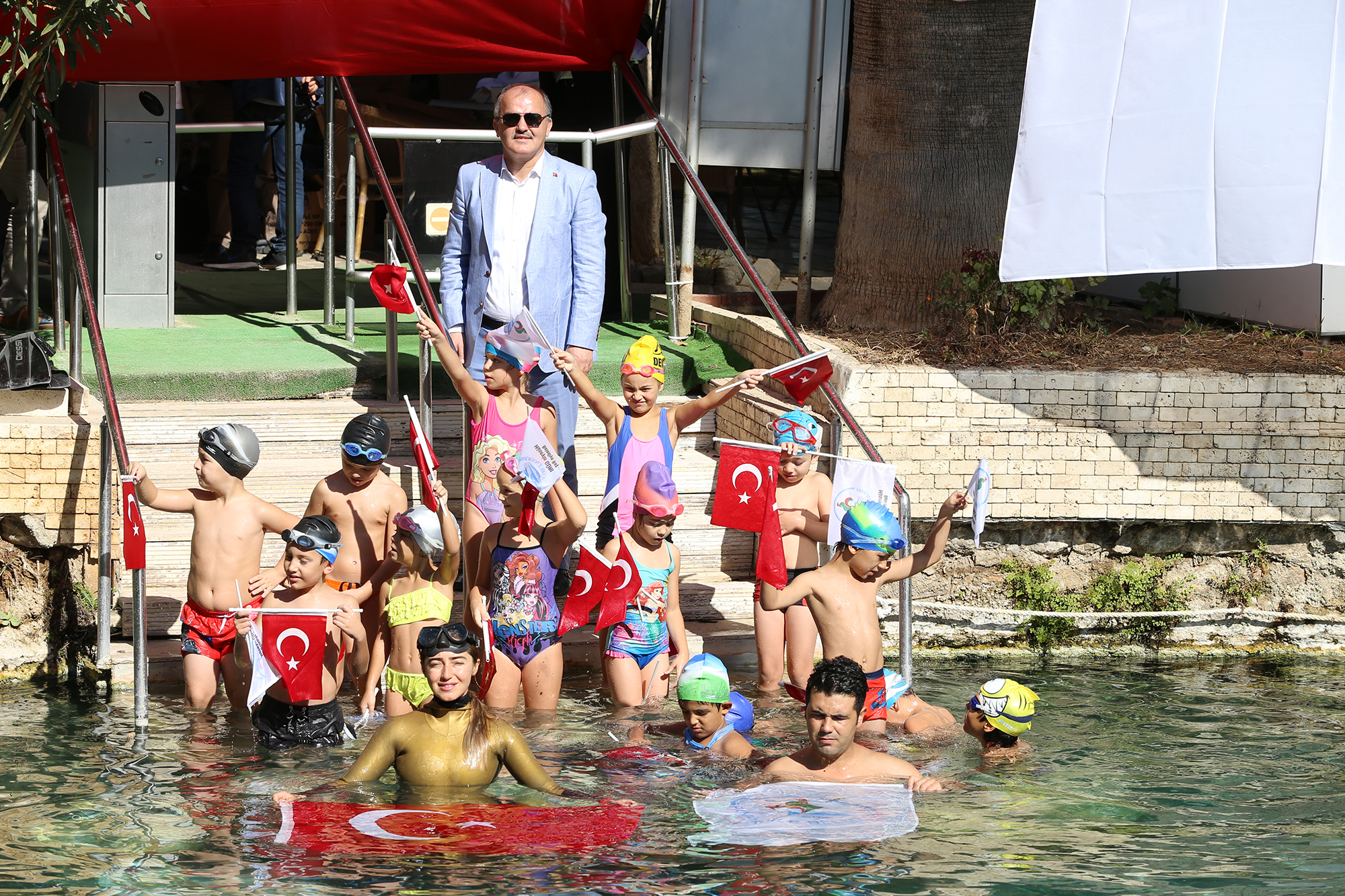 Konuşmaların ardından Milli Dalgıç serbest dalış Dünya rekortmeni Şahika Ercümen, tarihi antik havuzda dalış gerçekleştirdi. Milli sporcuyu izlemeye gelen minik yüzücüler de antik havuza girip, Ercümen ile yüzme imkanı buldu. Milli dalgıç Şahina Ercümen, minik sporculara nefes eğitimi vererek başarılı bir dalgıç olmanın tüyolarını verdi.