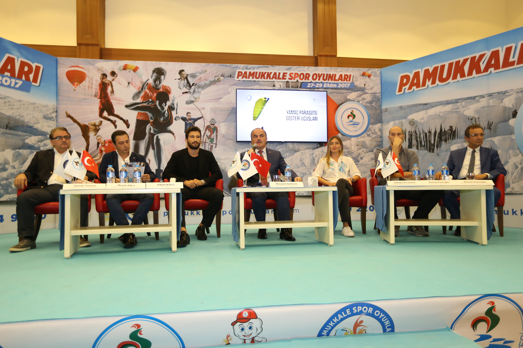 Pamukkale Belediyesi’nin organize ettiği “Pamukkale Spor Oyunları”nın lansmanı için ünlü isimler Denizli’ye geldi. Dünya rekortmeni milli dalgıç Şahika Ercümen, milli boksör Adem Kılıççı ve milli basketbolcu Ermal Kurtoğlu bu önemli organizasyonun tanıtımı için Pamukkale’de idi. Pamukkale Belediye Başkanı Hüseyin Gürlesin, kurulalı 3.5 yıl olan Pamukkale Belediyesi’nin bu büyük etkinliğe atmasından dolayı gururlu olduğunu ifade ederek, “27-29 Ekim tarihlerinde Pamukkale için çok önemli isimlerin geleceği program organize ettik. Pamukkale sadece turizm ile değil artık sporla da anılacak” dedi.