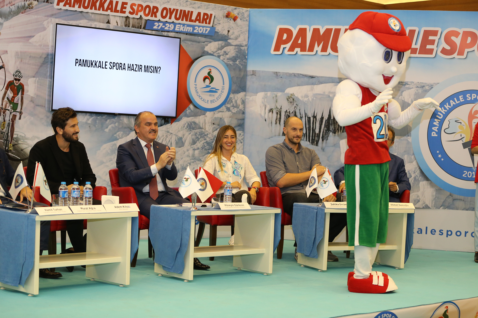Türkiye’ye örnek projeleri birer birer hayata geçiren Pamukkale Belediyesi, çok önemli bir etkinliğe daha imza atmaya hazırlanıyor. 27-29 Ekim tarihleri arasında bir çok branşta binlerce sporcunun yer alacağı “Pamukkale Spor Oyunları”nın tanıtımı Pamukkale Colossae Otel’de ünlü isimlerin katılımı ile yapıldı. Pamukkale Belediye Başkanı Hüseyin Gürlesin’in ev sahipliğinde yapılan lansmana Gençlik Hizmetleri Spor İl Müdürü Ahmet İbanoğlu ile birlikte Dünya rekortmeni milli dalgıç Şahika Ercümen, milli boksör Adem Kılıççı ve milli basketbolcu Ermal Kurtoğlu ile Fanatik Gazetesi Spor Yazarı Hamit Turan ve Haberturk Gazetesi Spor Yazarı Murat Ağca ile ulusal ve yerel medyadan önemli isimler katıldı. Pamukkale Spor Oyunları’nın tanıtım filminin izlenmesiyle başlayan lansmanın moderatörlüğünü de ünlü spor spikeri Dilara Gönder Yalın yaptı. Lansmanın ilk bölümünde Pamukkale Spor Oyunları’nın maskotu “Pamuk” tanıtıldı.