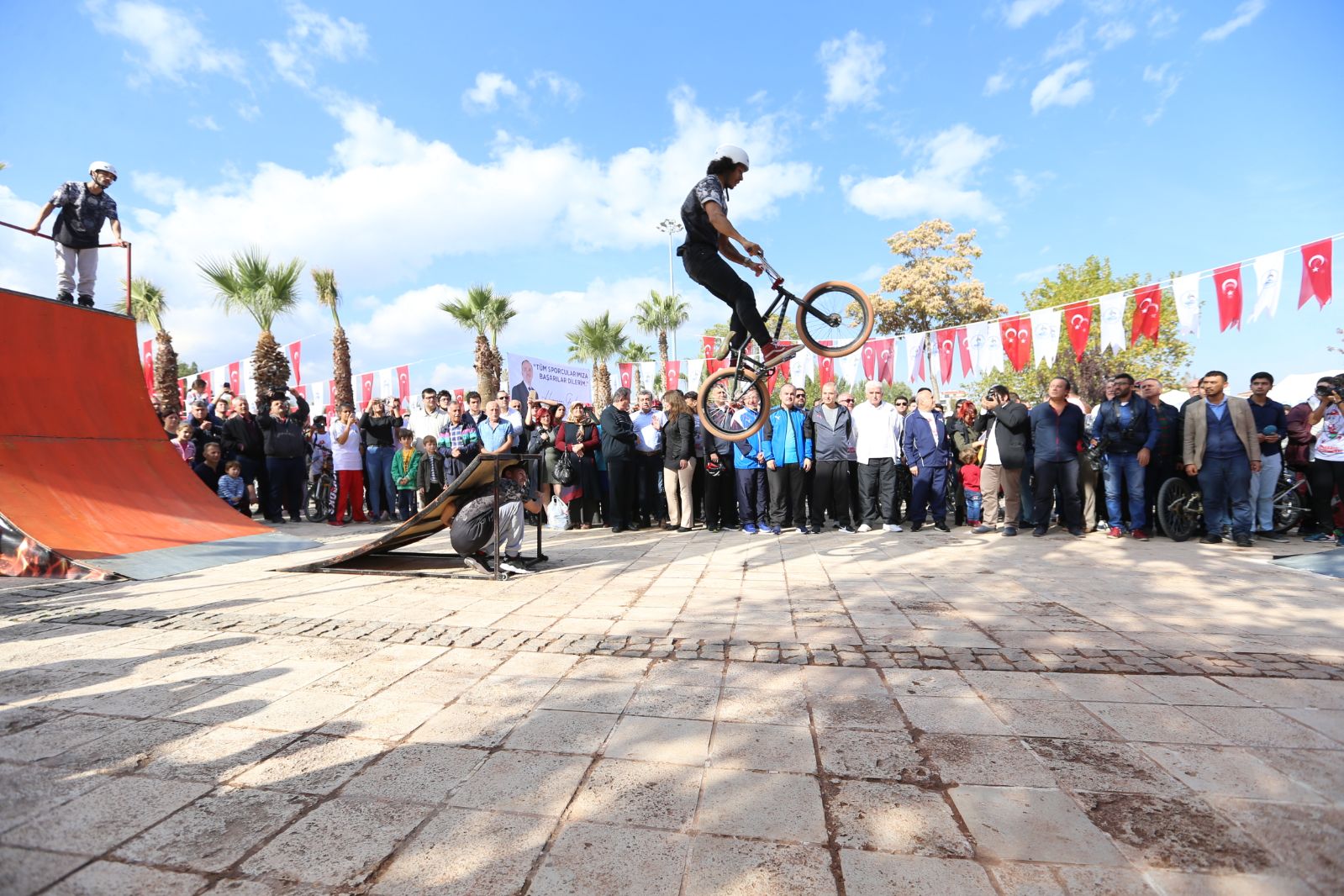 Pamukkale Spor Oyunları tüm hızıyla devam ediyor. Vali Recep Yazıcıoğlu Parkı’ndan başlayıp Forum Çamlık’a kadar devam eden kortej ile başlayan ardından yapılan panel ve ilginç yarışmalar renkli görüntülere sahne oldu. Pamukkale Spor Oyunları’nın ikinci gününde ise oldukça yoğun bir program var. Günün ilk etkinliğini adresi Vali Recep Yazıcıoğlu Parkı oldu. Burada bisikletleriyle toplanan vatandaşlara Denizli protokolü de eşlik etti. Bu önemli etkinliğe Pamukkale Belediye Başkanı Hüseyin Gürlesin ev sahipliği yaparken, etkinliğe Ak Parti Denizli Milletvekili Şahin Tin, Denizli Büyükşehir Belediye Başkanı Osman Zolan, PAÜ Rektörü Prof. Dr. Hüseyin Bağ, Pamukkale Kaymakamı Hayrettin Balcıoğlu, Gençlik Spor İl Müdürü Ahmet İbanoğlu, Ticaret Borsası Başkanı İbrahim Tefenlilive diğer protokol üyeleri ile Pamukkale Belediye Meclisi üyeleri ve çok sayıda vatandaş katıldı.
