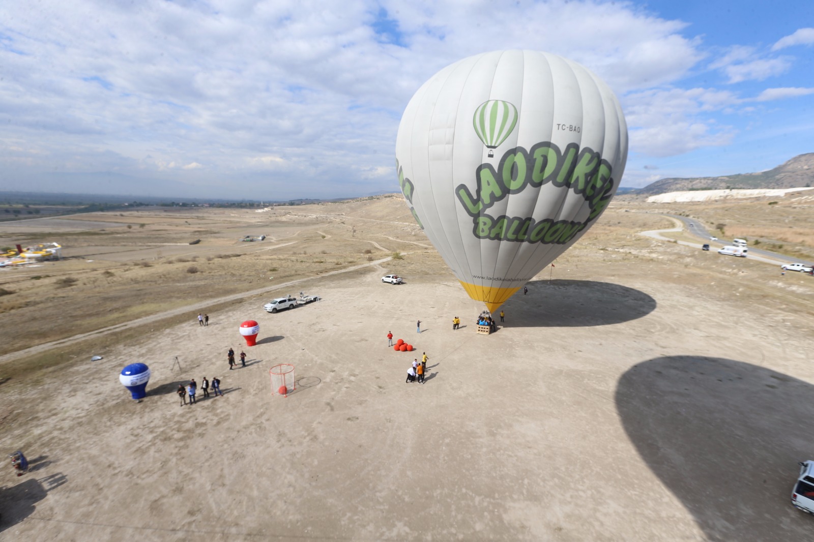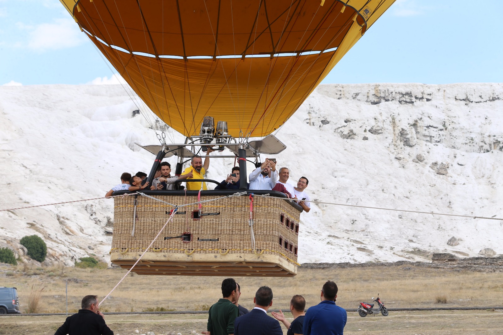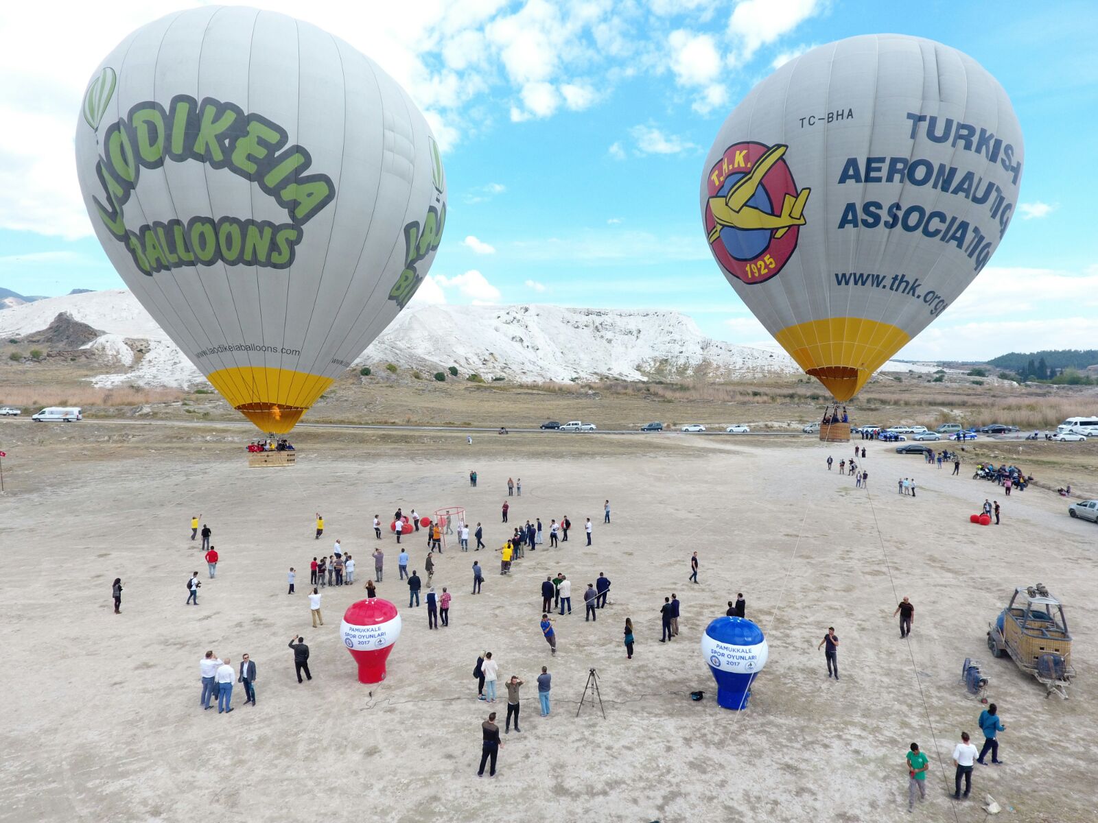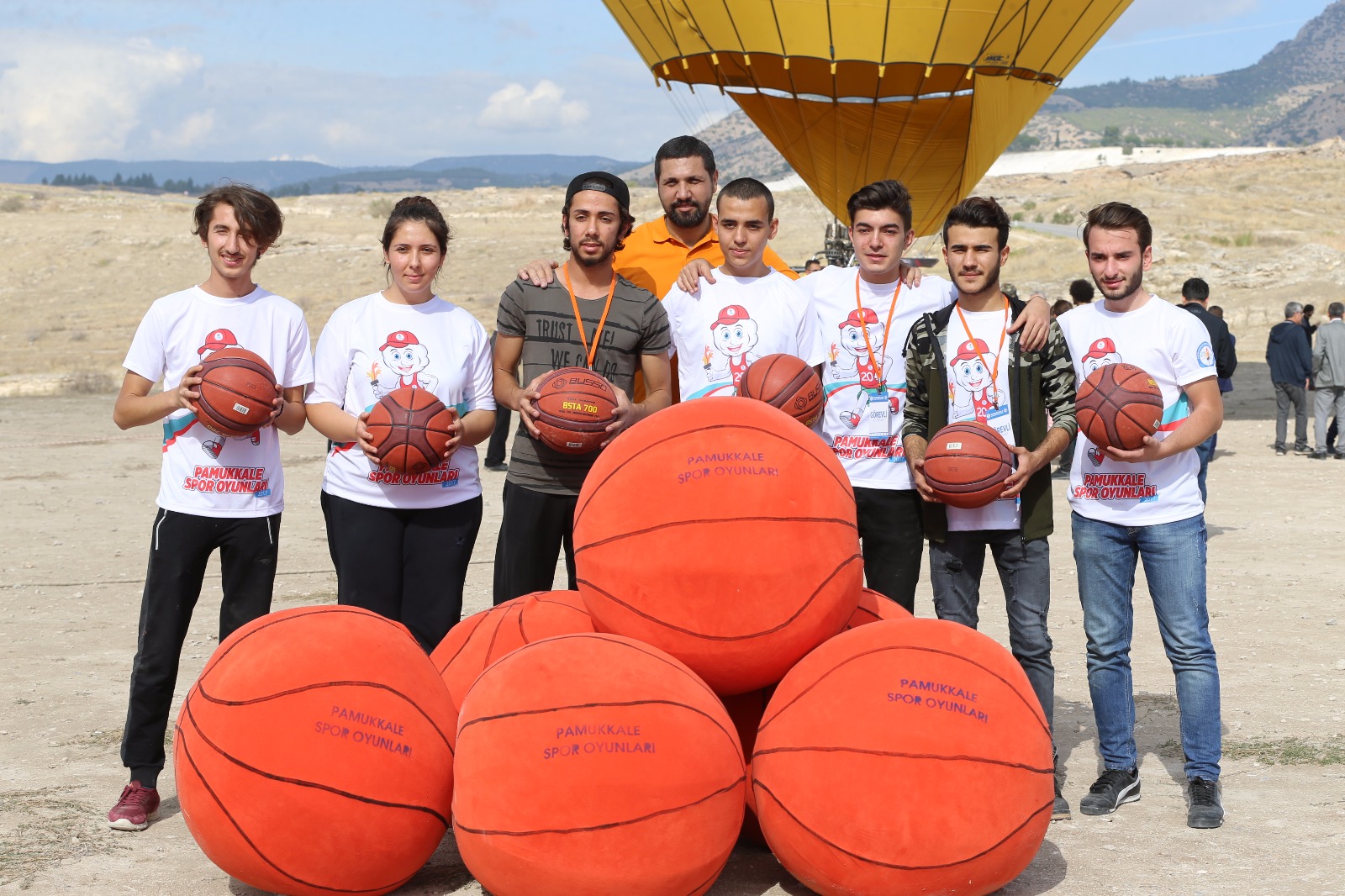 Pamukkale Spor Oyunları’nda muhteşem etkinlikler sürüyor. Kortej yürüyüşü ile başlayan ve şehir içi bisiklet turu ile devam eden Pamukkale Spor Oyunları çerçevesinde ilginç gösteriler de yapıldı. 3x3 Dünya Mirasları Turnuvası lansmanı Pamukkale travertenlerinin önünde gerçekleştirildi. Havalanan balonlarda yer alan sporcular yerdeki sepetlere basket atmaya çalıştılar. Bu sporcular arasında eski milli basketbolcu Tutku Açık da yer aldı. Pamukkale’nin doğal güzelliklerine dikkat çekmek amacıyla yapılan etkinlik renkli görüntülere sahne oldu.